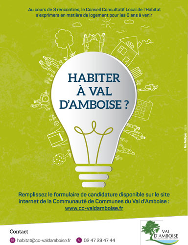La communauté de communes du Val d’Amboise, dans le cadre de l’élaboration de son troisième Programme local de l’habitat (PLH) lance un appel à candidatures pour intégrer le futur « Conseil consultatif local de l’habitat » qui se réunira 3 fois au cours de l’année 2022 pour réfléchir à l’habitat de demain sur le territoire. Pour faire partie de cette aventure, il vous suffit de compléter ce formulaire : https://airepublique.typeform.com/to/QNKtryam